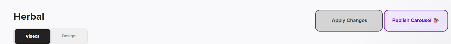 Once your Videos and Design tabs are set, click Publish Carousel to save and generate your embed code.
