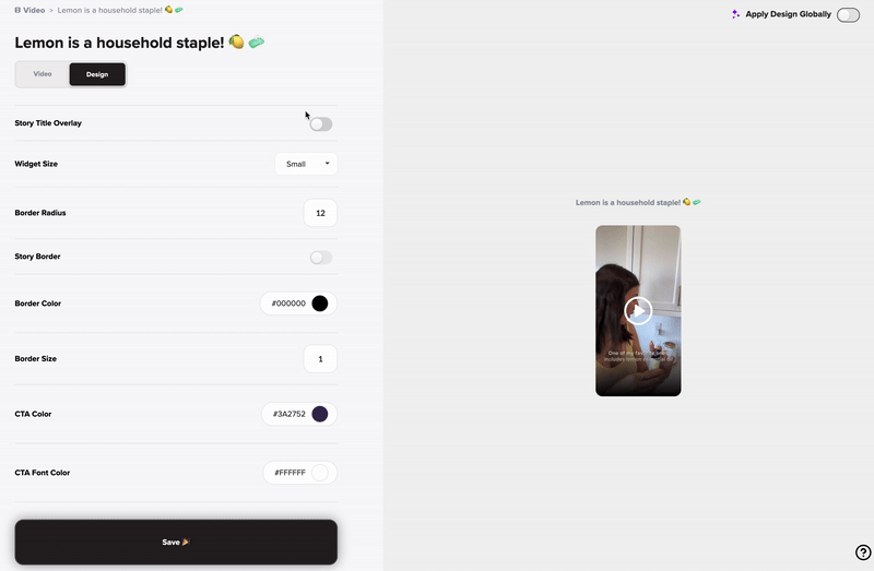 This section allows you to fully customize the look and feel of your video widget: