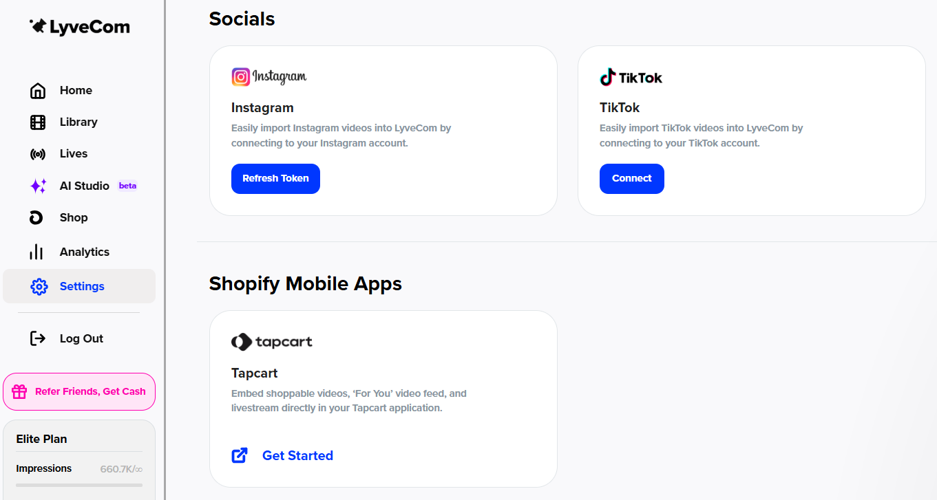 Single Video: Upload from desktop or import from Instagram or TikTok