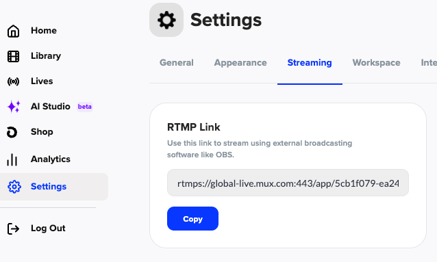 Copy your RTMP Link.