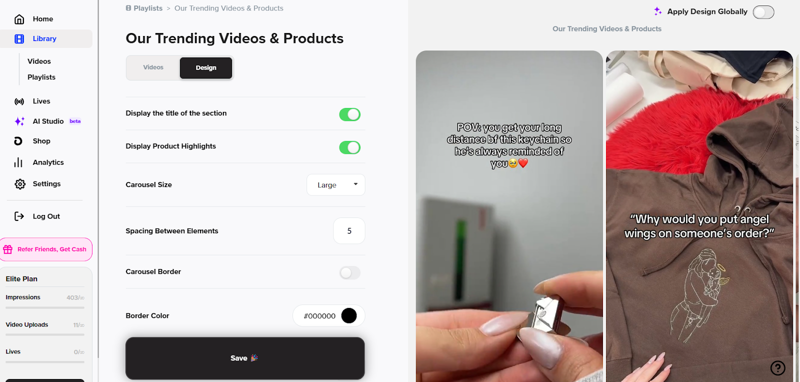 Purpose: This guide walks you through how to organize videos within a playlist and apply design settings to your video library.