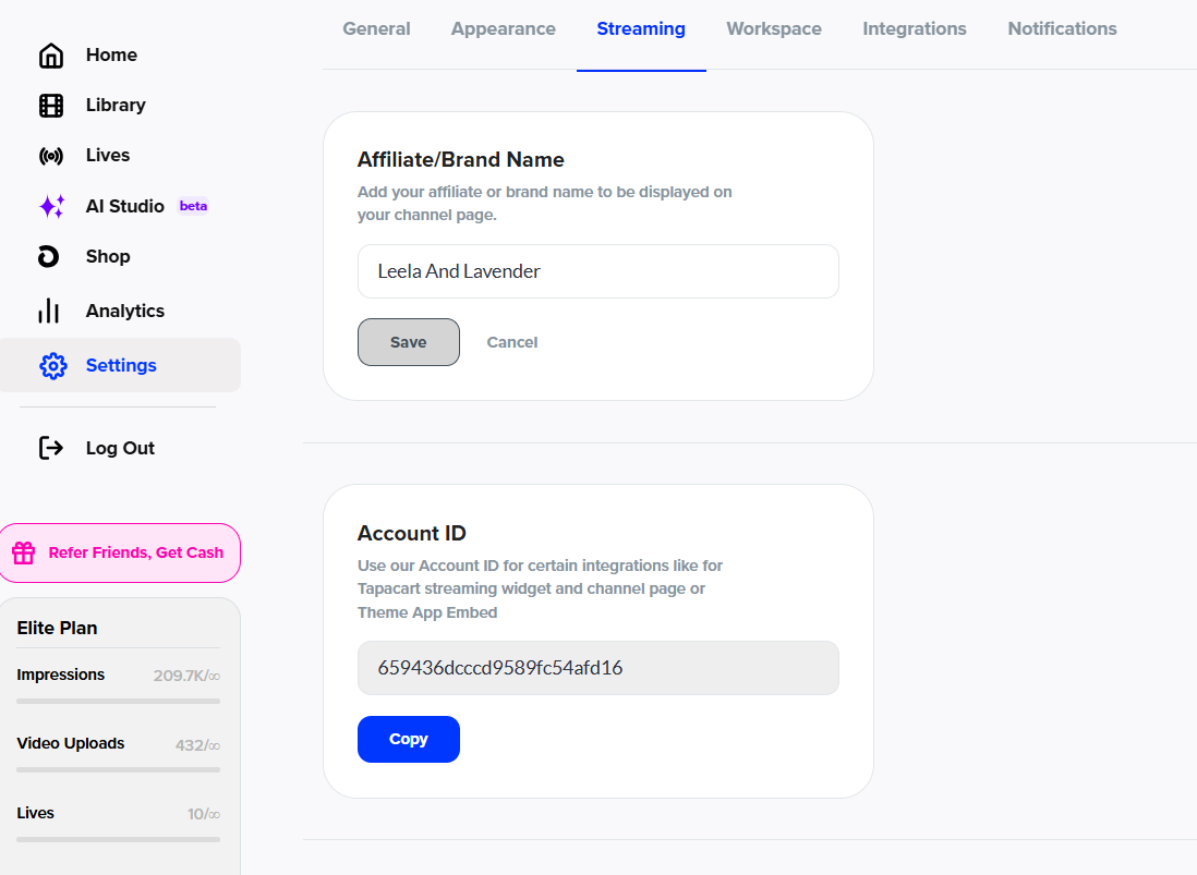 1. Copy Your Lyvecom Account ID