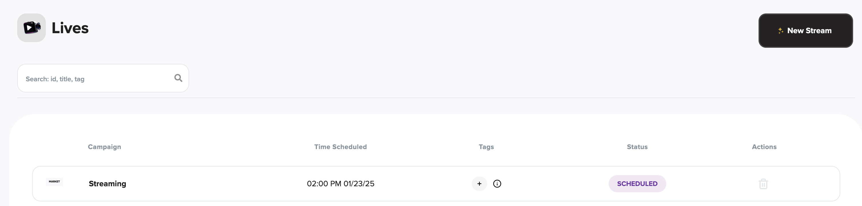 Head to your scheduled test livestream in the LyveCom dashboard. This is where you’ll: